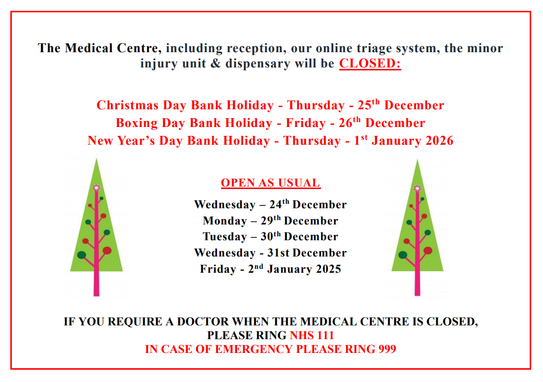 Okehampton Medical Centre upcoming bank holidays